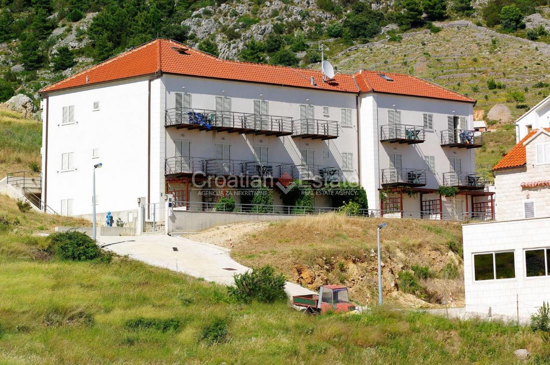 A spacious business premises of 1000 m2 in Bol on the island of Brač for sale. The object is set on a plot of 900 m2 and includes 20 apartments. It has high rental potential with possibility of investment return.